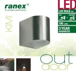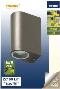 Ranex Ranex LED RVS Buiten Muurlamp Bastia Met Twee Lichtpunten Grey