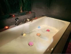 Met deze mooie Aqua Light LED Decoratielampjes proeft u de sfeer en geniet u bij elke pool, vijver, badkuip of zwembad van de aanwezigheid van mooie kleurige LED lights. Deze sfeerlampjes zijn waterdicht en kunnen ook d.m.v. de zuignap in de badkuip of jacuzzi bevestigd worden. Ze kunnen ook gelegd worden en deze zullen dan drijven.