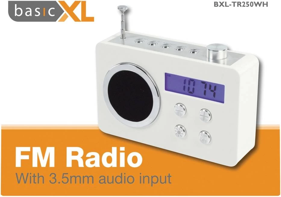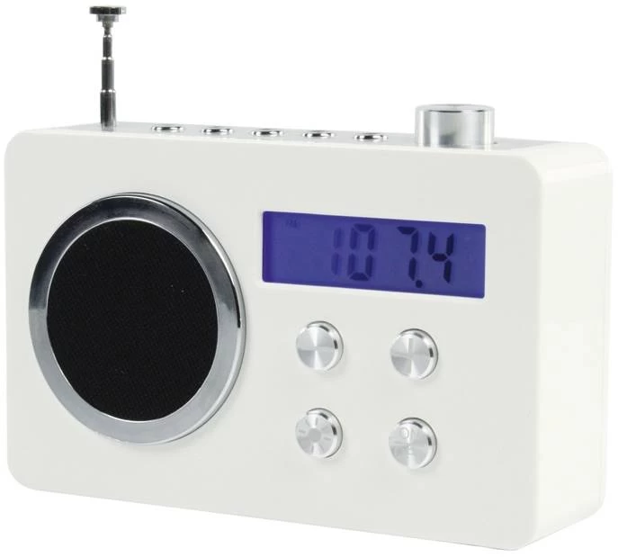 Deze FM-radio heeft een gestabiliseerde ontvanger en een telescopische antenne voor een perfecte ontvangst. De radio beschikt ook over een ingebouwde wekker, een display met LED-verlichting, een hoofdtelefoonuitgang en een externe audio-ingang.