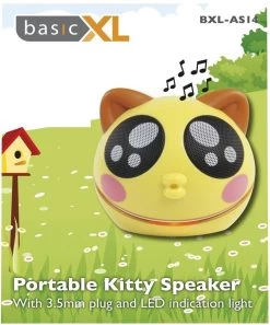 Deze poezenspeaker heeft een 3,5 MM plug waarmee je gemakkelijk je MP3-speler of mobiele telefoon kunt aansluiten. De speaker wordt gevoed door 3x AAA batterijen of via een USB-kabel (incl.). De speaker beschikt ook over een volumeregelaar en een LED-lamp die licht geeft wanneer de speaker ingeschakeld is.