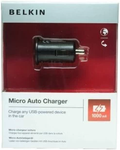 De kleine LED USB Micro Autolader – Black van het merk Belkin levert 1000 mA en hiermee kunt u uw Smartphone of Tablet snel opladen tijdens het rijden. Deze kunt u aansluiten op een 12-volt sigarettenaanstekerplug van een voertuig. Het lage profiel ontwerp past gemakkelijk in uw dashboard. U sluit uw USB kabel van het apparaat aan op de Belkin autolader. Zodra het gekleurde LED lampje brandt betekent dit dat de stroom is ingeschakeld en klaar is om op te laden.