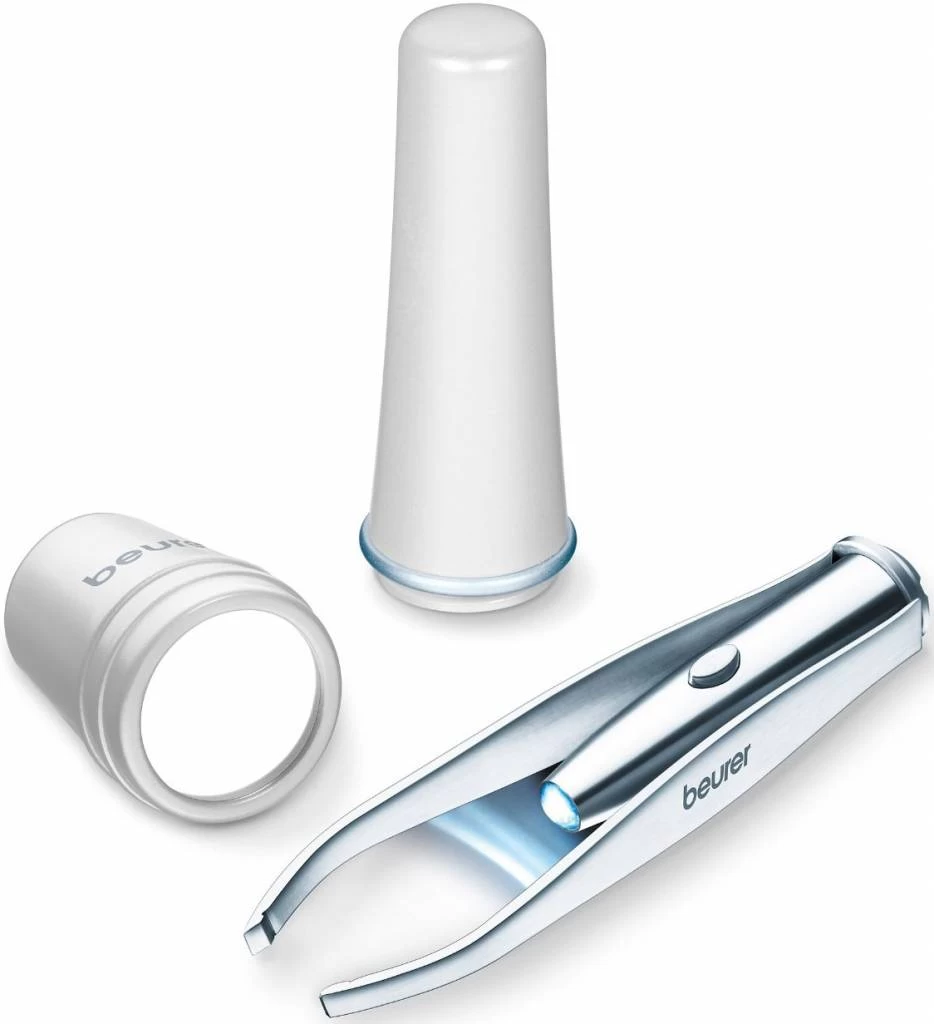 De LED pincet van RVS bevat een heldere lamp om de mini haartjes gemakkelijk op te sporen en te verwijderen. In de deksel zit een spiegeltje met 2,2 cm diameter. Inclusief 3 x 1,5V AG3 batterijen.