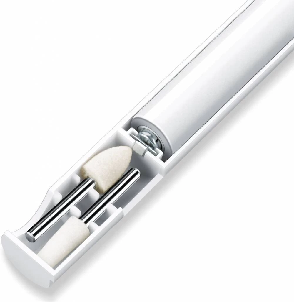 De manicure-pen zorgt ervoor dat uw handen er altijd verzorgd en netjes uit zien, ook onderweg! De pe wordt geleverd met 3 opzetstukjes. De niet gebruikte opzetstukken kunt u in de manicurepen opbergen. Inclusief 1 x AAA batterij.