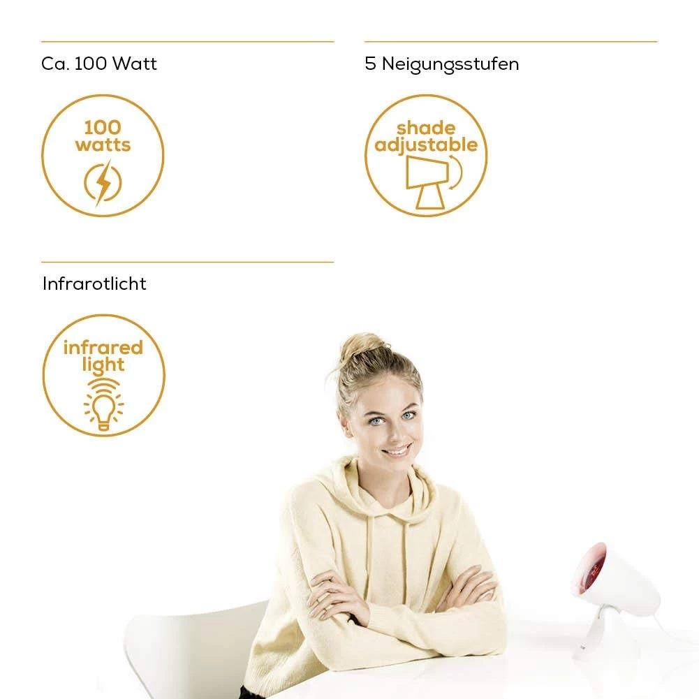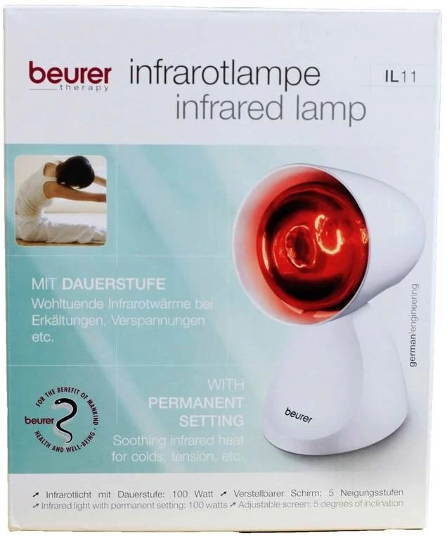 Of het nu gaat spanning in de spieren, reumatische ziekte of keel-, neus- en ooraandoening, de warmte van de Beurer IL 11 Infraroodlamp heeft vaak een rustgevend effect. De lamp heeft een vermogen van 100 watt en beschikt over vijf schuinte posities om deze zo te plaatsen dat u kunt genieten van het volle effect.