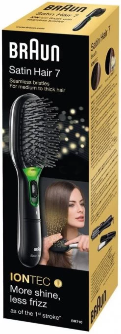 Nooit meer haar uit model dankzij de eerste borstel ter wereld met IONTEC. Deze laat miljoenen actieve ionen vrij die elke haarstreng omhullen tegen pluizig en statisch haar en voor een zichtbare superglans.