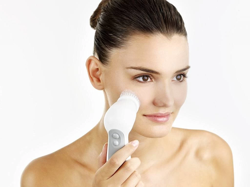 De speciale Braun gezichtsborstel verwijdert make-up en onzuiverheden tot diep in de poriën – 6 x beter dan reinigen met de hand. Daarnaast verfijnt en scrubt deze de huid met microbewegingen. 100% waterbestendig voor comfortabel gebruik onder de douche.