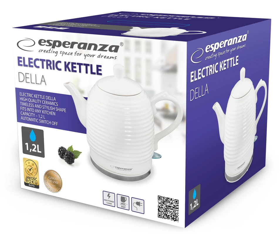 Deze stijlvolle waterkoker van het merk Esperanza is gemaakt van hoogwaardig keramiek. De waterkoker is uitgerust met een ingebouwd verwarmingselement en daardoor kunt u makkelijk de waterkoker op het element zetten. Het handvat wordt niet heet, waardoor u makkelijk de waterkoker na het koken van het water op kunt pakken en een heerlijk glaasje thee kunt zetten!