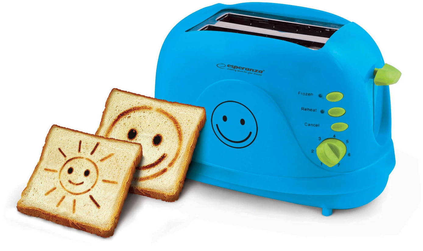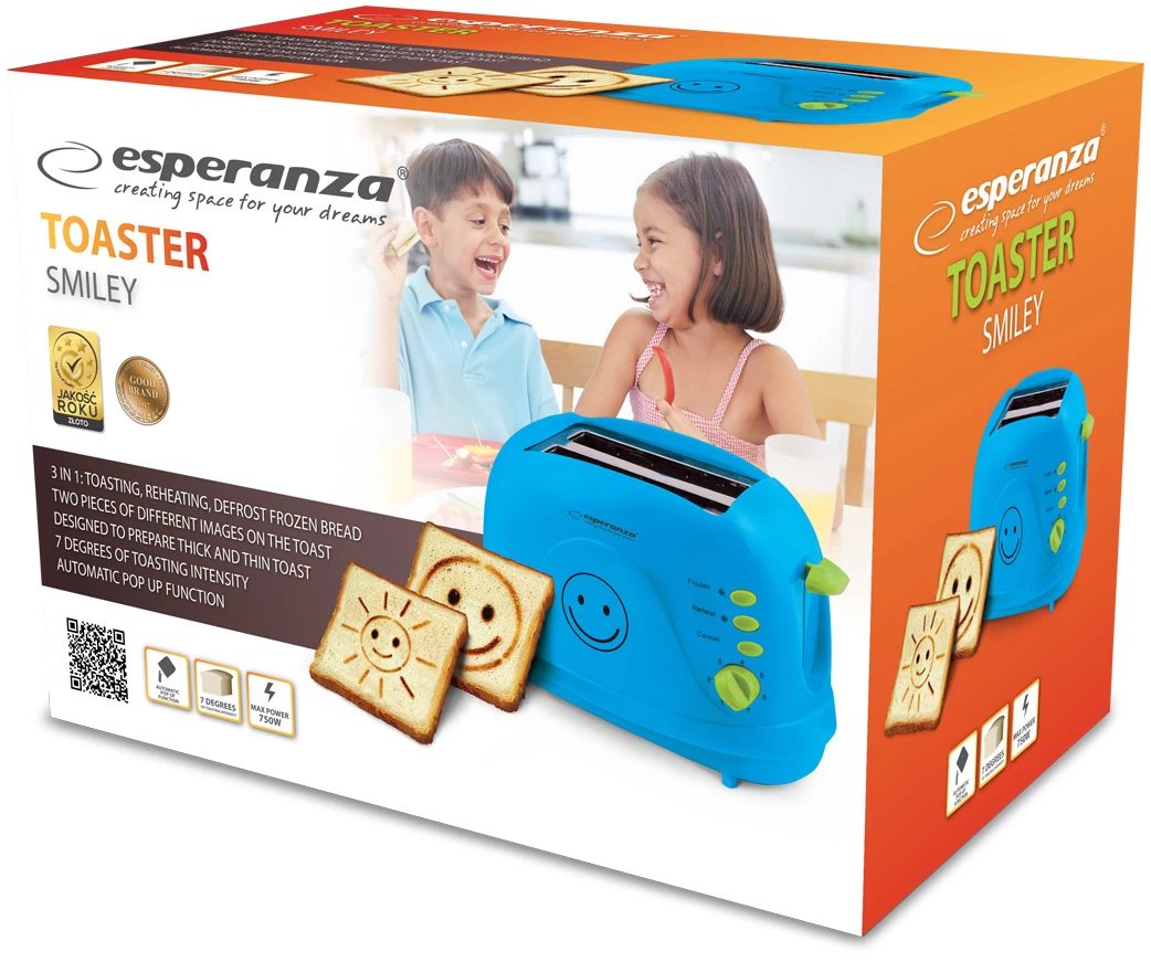Kenmerken van Esperanza EKT003B Broodrooster Smiley – Blauw