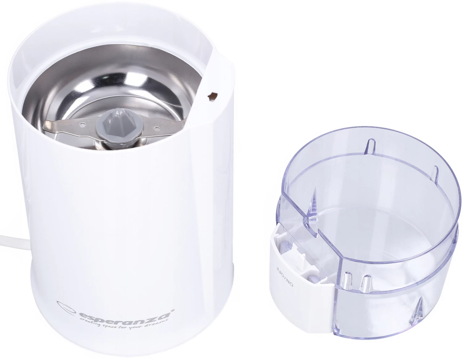 Deze Esperanza EKC001W elektrische koffiemolen maalt jouw koffiebonen gemakkelijk en iedere dag opnieuw, volledig naar jouw wens. Deze bonenmaler is daarmee speciaal gemaakt voor liefhebbers voor wie koffie niet zomaar een drankje is, maar dé manier om iedere ochtend perfect te maken. Ook is de koffiemolen uitstekend geschikt voor het malen van kruiden en specerijen, zoals peper of zaden.
