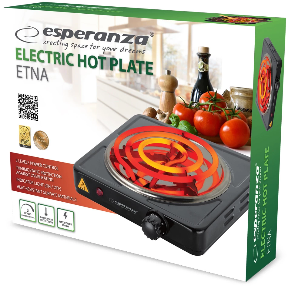 Kenmerken van Esperanza Etna Elektrische Kookplaat – Zwart