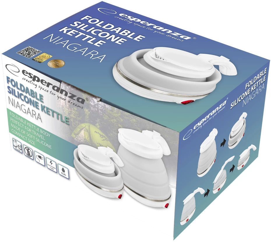 Onze draagbare Esperanza “Niagara” waterkoker met zijn opvouwbare body is perfect voor kleine huishoudens, elke reis en ook als u veel verhuist.