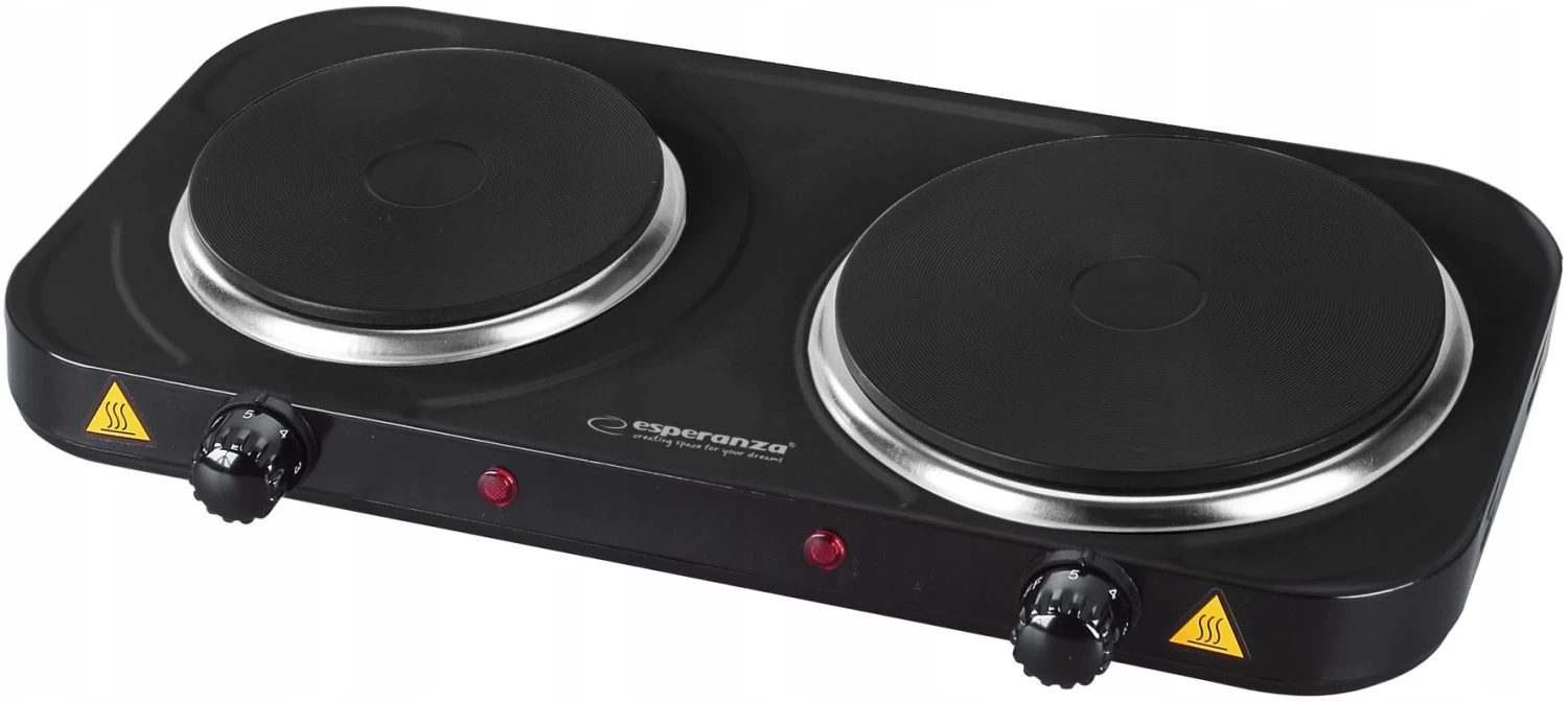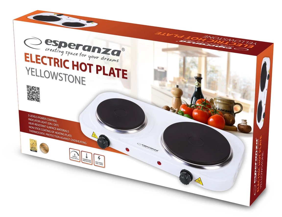 Deze elektrische kookplaat Yellowstone van het merk Esperanza heeft twee verschillende maten kookplaten van 1000W en 1500W.