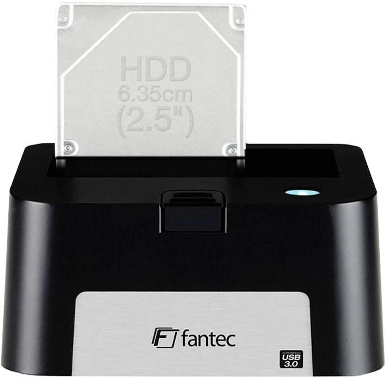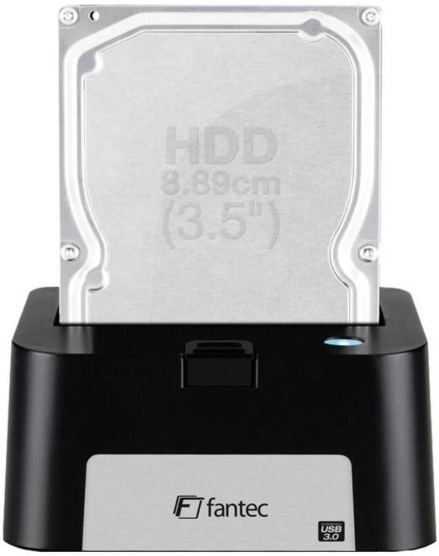 De Fantec MR-USB 3.0 LED Docking Station Black voor gebruik met 63.5 MM (2,5″) / 88.9 MM (3,5″) Serial ATA harde schijf / SSD. De HDD grootte is geheel onbeperkt. Een design dat schroefloos en carrier free is voor een gemakkelijke en efficiënte HDD uitwisseling. De Docking Station heeft een toegevoegde metalen grondplaat voor hoge stabiliteit en een rugged design. Aan/-uitknop bevindt zich aan de achterzijde. De Docking Station heeft een blauwe status LED-indicator.