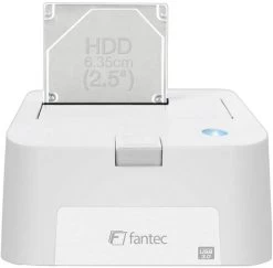 De Fantec MR-USB 3.0 LED Docking Station White voor gebruik met 63.5 MM (2,5″) / 88.9 MM (3,5″) Serial ATA harde schijf / SSD. De HDD grootte is geheel onbeperkt. Een design dat schroefloos en carrier free is voor een gemakkelijke en efficiënte HDD uitwisseling. De Docking Station heeft een toegevoegde metalen grondplaat voor hoge stabiliteit en een rugged design. Aan/-uitknop bevindt zich aan de achterzijde. De Docking Station heeft een blauwe status LED-indicator.