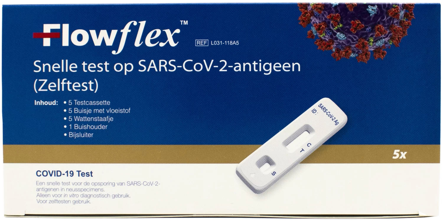 Een snelle zelftest voor de opsporing van SARS-CoV-2-antigeen in neusswab. Dit artikel betreft een multipack van 5 stuks. Voor zelftesten gebruik. Lees de instructies zorgvuldig door voordat u de test uitvoert. Voor gebruik de bijsluiter aandachtig doorlezen.