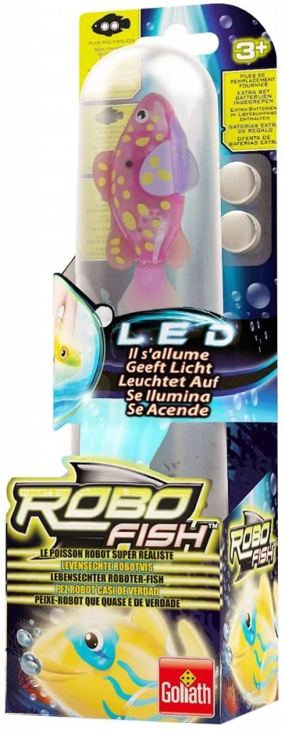 De Goliath LED RoboFish Flare zorgt voor veel waterplezier! De ultieme speelgoed voor in de zomer of voor in bad! De RoboFish lijkt net een echte vis! Gooi de RoboFish in het water en hij begin meteen te zwemmen! Door het water activeert de levensechte staartvin bewegingen van de vis. Lichtje uit en je ziet de vis zelfs zwemmen in het donker dankzij de LED instructie. Ben je het gezwem helemaal zat? Haal de RoboFish uit het water en hij stopt per direct!