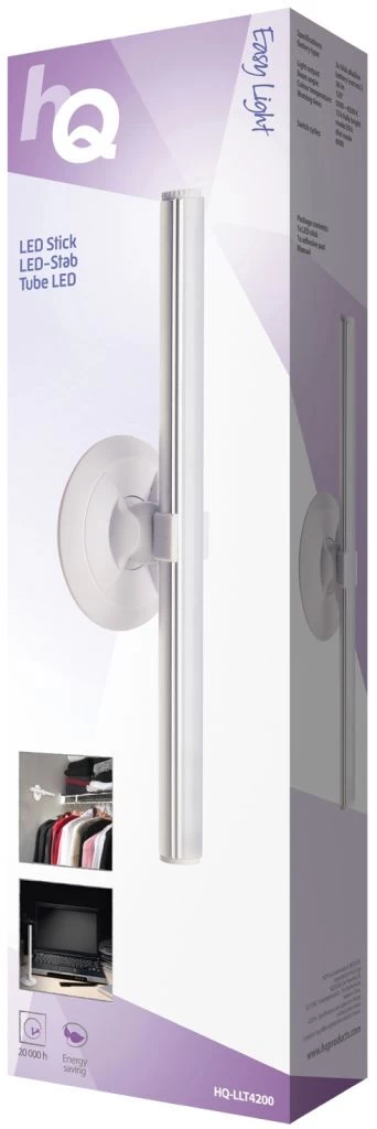 LED-buis met bevestigingssticker om donkere ruimtes te verlichten waar geen stroomvoorziening is, zoals kasten, trappen en auto’s. De volledig verstelbare lichtstraal werkt op batterijen en heeft 4 standen.