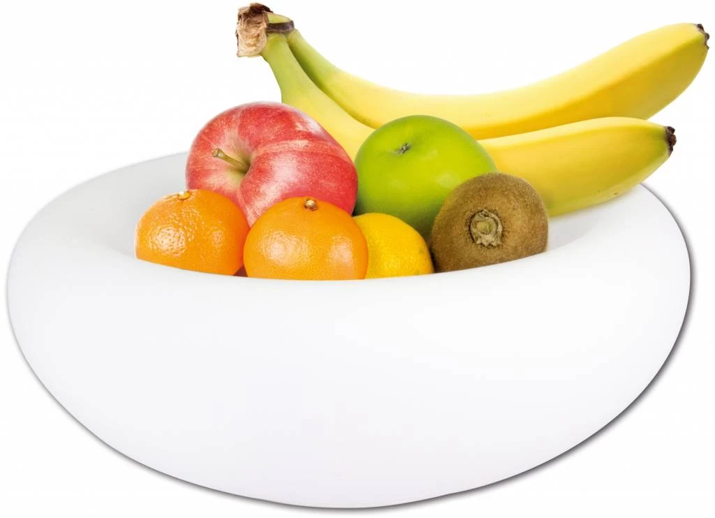 Deze unieke glazen fruitschaal creëert de perfecte sfeer voor uw huiskamer of keuken. De schaal wordt volledig gevuld met verschillende kleuren licht, waardoor u volledig tot rust komt.