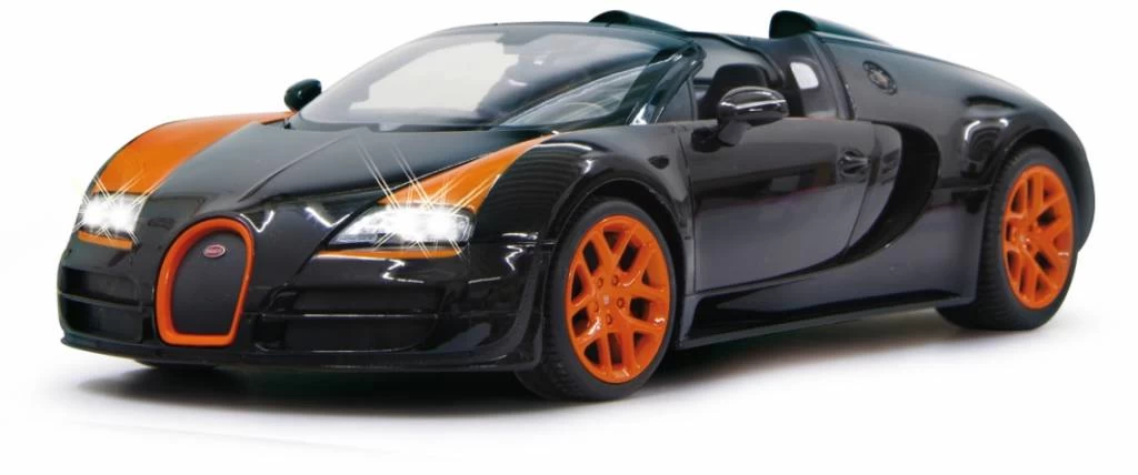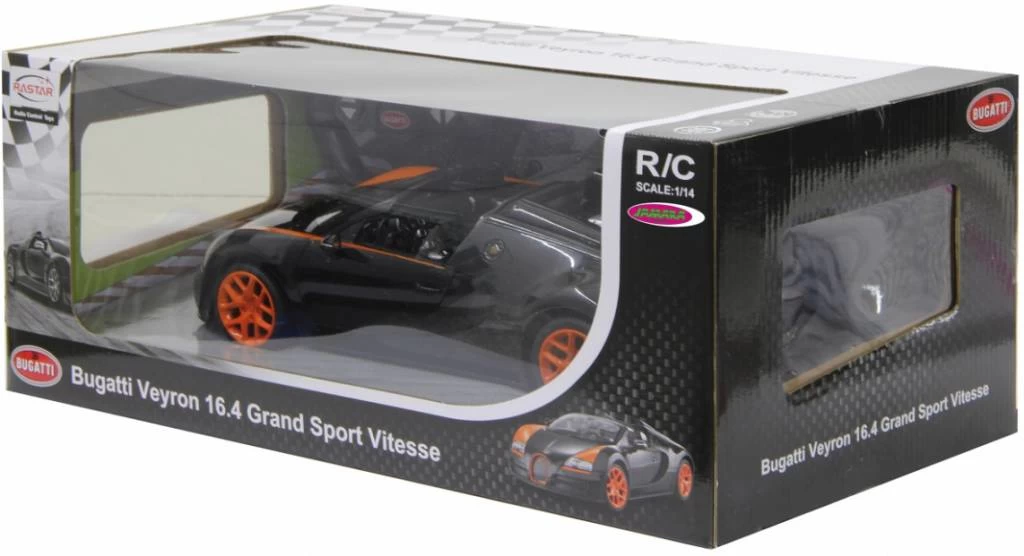 Dit is de radiografisch bestuurbare Jamara Bugatti Veyron Grand Sport Vitesse RC 1:14 in de kleur zwart.