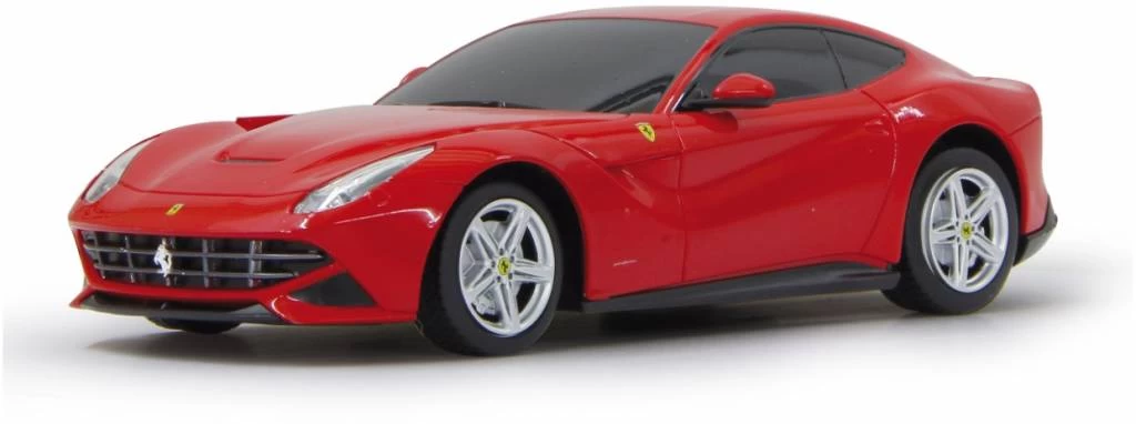 Dit is de radiografisch bestuurbare Jamara Ferrari F12 Berlinetta RC 1:24 in de kleur rood.