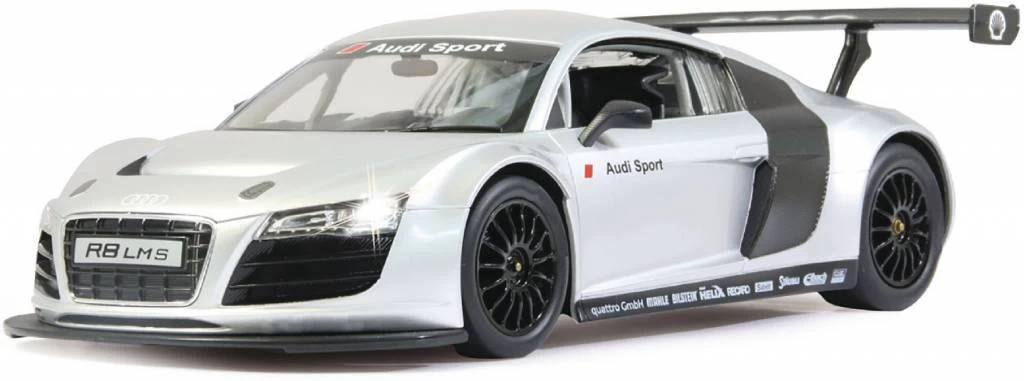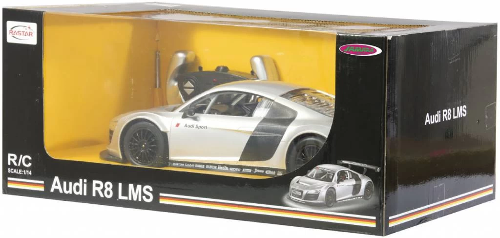 Dit is de radiografisch bestuurbare Jamara LED Audi R8 LMS RC 1:14 in de kleur zilver.