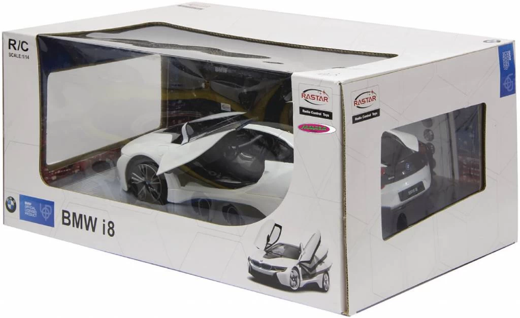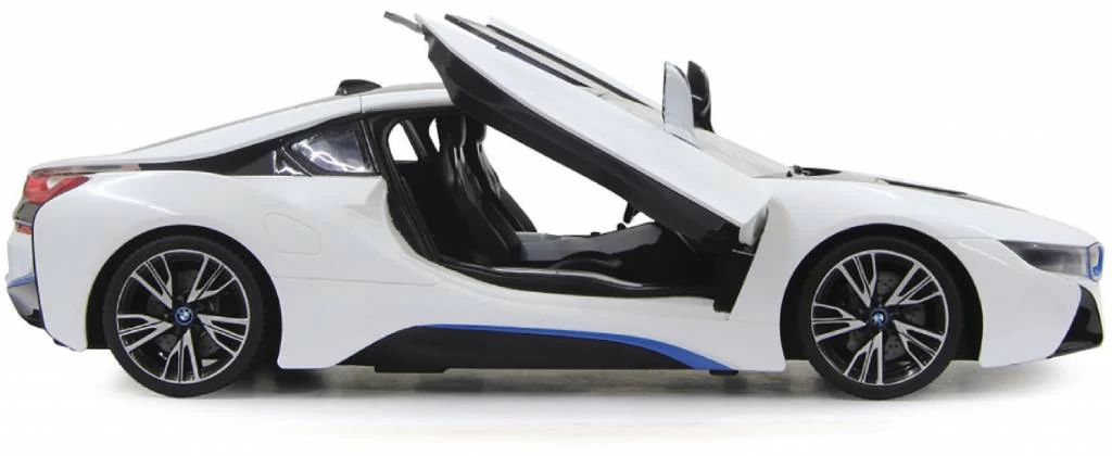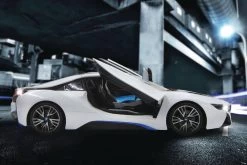 Dit is de radiografisch bestuurbare Jamara LED BMW I8 RC 1:14 met deuren die open kunnen in de kleur wit.