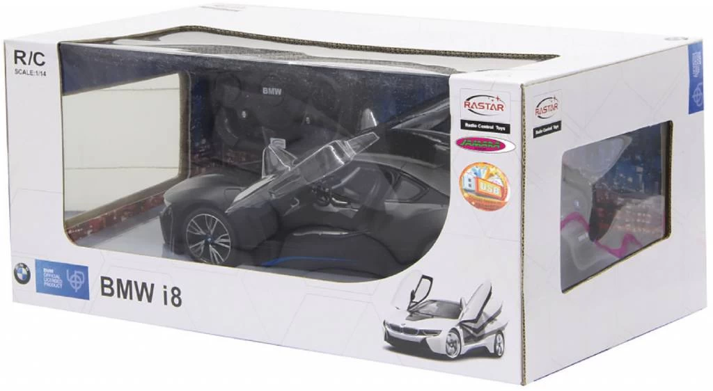Dit is de radiografisch bestuurbare Jamara LED BMW I8 RC 1:14 in de kleur zwart.