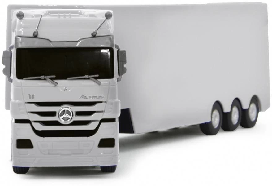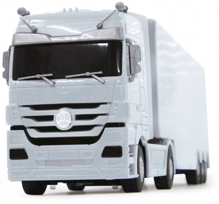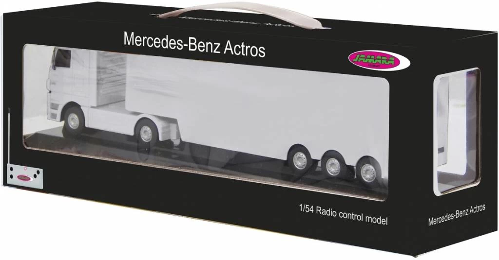Dit is de Mercedes-Benz Actros bestuurbare vrachtauto van Jamara. Wat deze auto zo uniek maakt is dat de achterklep van de trailer geopend en gesloten kan worden. Ook kan de trailer handmatig losgekoppeld worden en is de wieluitlijning te verstellen.
