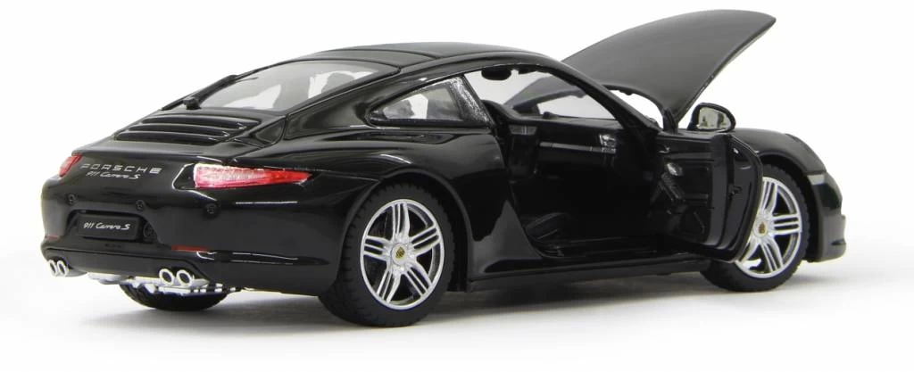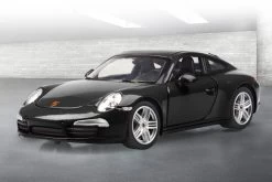 De stoere sportwagen; Jamara Porsche 911 Carrera S RC in de kleur zwart kan met de hand bestuurd worden en is daarom geschikt voor gebruik binnenshuis. Het unieke aan deze auto is dat je de deuren en kofferbak kan laten openen. De metalen behuizing van de auto is afgewerkt met een hoge kwaliteit.