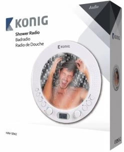 AM/FM-radio met handige spiegel om in de badkamer naar muziek te luisteren. Het apparaat is uitgerust met een LED-display waarop de frequentie of tijd wordt weergegeven.
