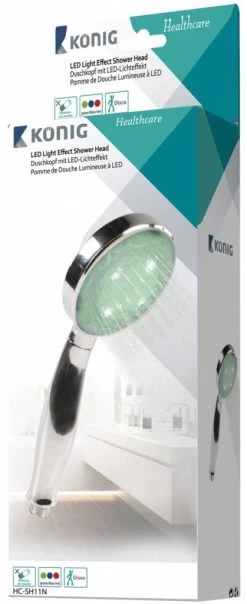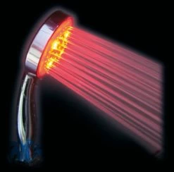 Douchekop met ingebouwde LED’s voor een verrassend lichteffect. Zodra het water begint te stromen gaan de LED’s automatisch aan. De kleur van de LED’s verandert willekeurig zolang het water stroomt.