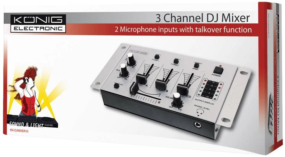 Eenvoudig en compact uitgevoerde DJ mixer, zeer geschikt voor beginnende DJ’s of als mengpaneel waarop 3 geluidbronnen kunnen worden aangesloten.