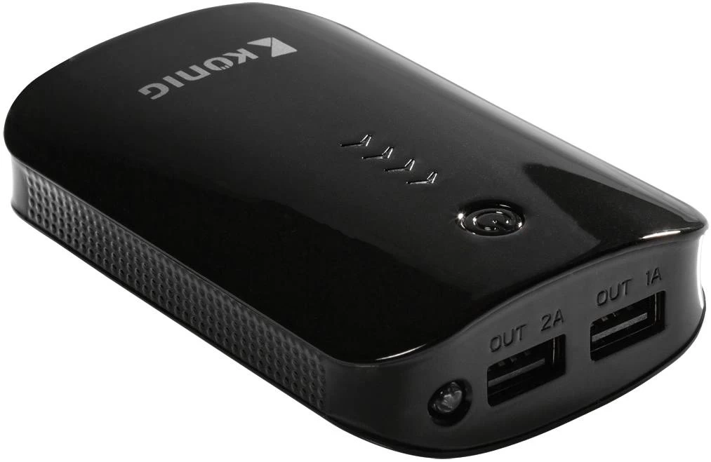 De LED powerbank van König kan op diverse apparaten worden aangesloten, zoals op smartphones, iPhones, navigatiesystemen, mp3-spelers, digitale camera’s en nog veel meer, en deze ook tegelijkertijd opladen. Daarnaast kunt u twee apparaten tegelijkertijd aansluiten. Eén van 2,1A en één van 1A, beiden 5V. Deze powerbank is een handige oplossing voor onderweg, op kantoor of thuis omdat u er USB-apparaten mee kunt opladen zonder dat u een pc- of USB-oplader nodig hebt.