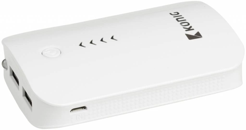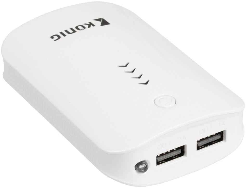 De LED powerbank van König kan op diverse apparaten worden aangesloten, zoals op smartphones, iPhones, navigatiesystemen, mp3-spelers, digitale camera’s en nog veel meer, en deze ook tegelijkertijd opladen. Daarnaast kunt u twee apparaten tegelijkertijd aansluiten. Eén van 2,1A en één van 1A, beiden 5V. Deze powerbank is een handige oplossing voor onderweg, op kantoor of thuis omdat u er USB-apparaten mee kunt opladen zonder dat u een pc- of USB-oplader nodig hebt.