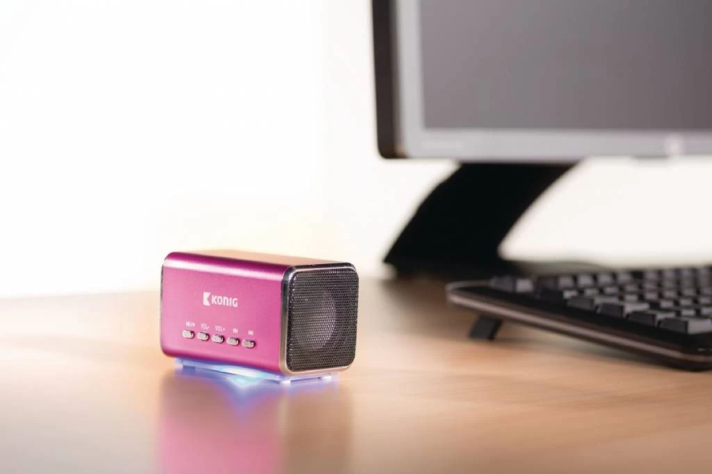 Neem altijd uw favoriete muziek met u mee en luister waar u maar wilt met deze portable LED speaker. De speaker bevat een Micro SD kaartslot, zodat u vanaf een geheugenkaart altijd uw eigen muziek kunt draaien. Ook zit er een USB aansluiting op, hiermee kunt u de speaker opladen. Aan de zijkant zitten de bedieningsknoppen waarmee u de muziek kunt afspelen en stoppen, door- en terugspoelen en het volume kunt regelen. De onderkant van de speaker wordt verlicht met een blauwe LED licht.