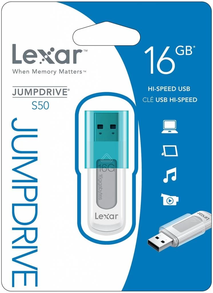De Lexar ® JumpDrive® S50 LED USB – Turqouise biedt handige en betrouwbare draagbare opslag van 16 GB. Deze Hi-Speed met schuifdeksel is uw oplossing voor het veilig opslaan van al uw waardevolle bestanden, foto’s, videos en nog veel meer. Tijdens de overdracht van uw data naar de USB knippert het LED indicatie lampje. Zo weet u wanneer de klus is geklaard en alles er op staat.
