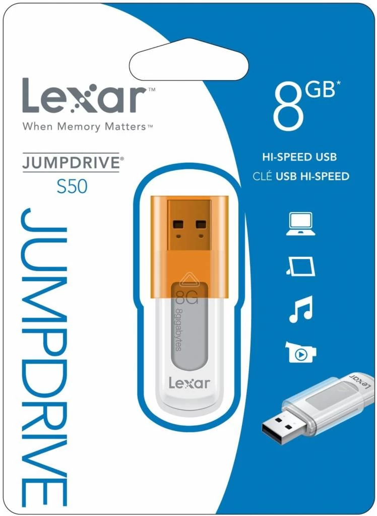 De Lexar ® JumpDrive® S50 LED USB – Oranje biedt handige en betrouwbare draagbare opslag van 8 GB. Deze Hi-Speed met schuifdeksel is uw oplossing voor het veilig opslaan van al uw waardevolle bestanden, foto’s, videos en nog veel meer. Tijdens de overdracht van uw data naar de USB knippert het LED indicatie lampje. Zo weet u wanneer de klus is geklaard en alles er op staat.