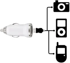 Met de Universele LED USB Mini Autolader / Car Charger Adapter White laadt u gemakkelijk en efficiënt uw USB apparaten in de auto op. De lader heeft een output van 5V / 700 mAh. De autolader werkt op 12V en 24V sigarettenplug van uw auto. U sluit daar de USB kabel eenvoudig op aan.