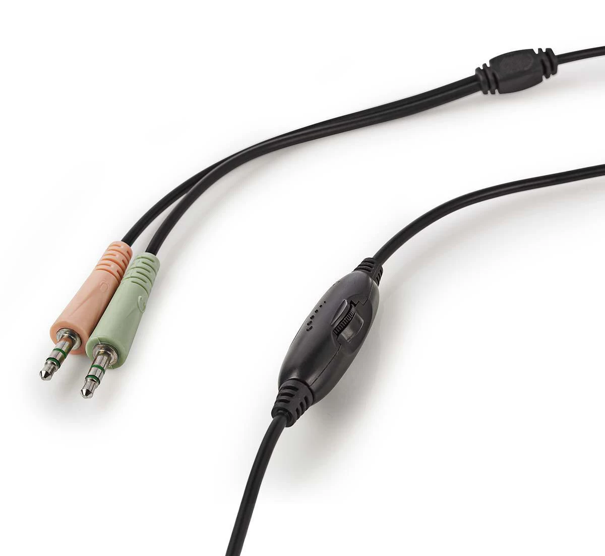 Er zijn 3,5 mm audio-aansluitingen voor poorten voor microfoon-in en audio-uit en een lange kabel van 2,2 meter voor degenen die willen rondlopen terwijl ze spelen.
