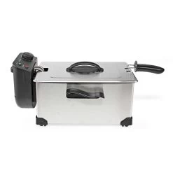 Geniet van je gefrituurde snacks met deze ruime friteuse met roestvrijstalen behuizing en afneembaar deksel. Met zijn inhoud van 3 liter is deze friteuse perfect voor een maaltijd met het hele gezin.