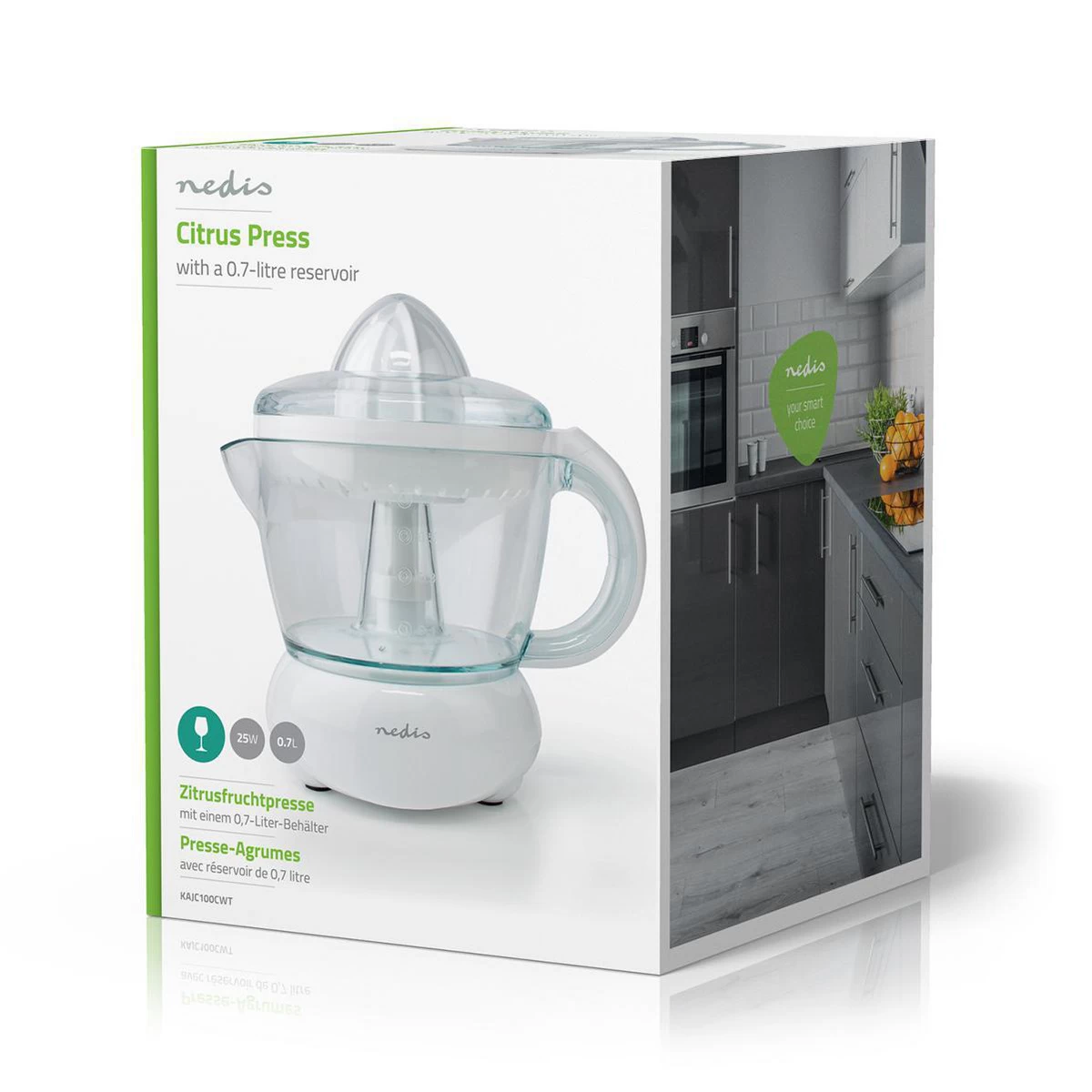 Geniet elke dag van een versgeperst sapje. De Nedis elektrische citruspers heeft een inhoud van 0,7 liter, wat ongeveer gelijk staat aan 4 porties. In slechts enkele minuten bereid je moeiteloos je dagelijkse vitamineshot.