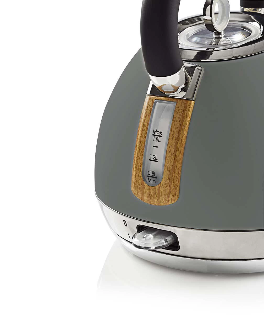 Door een combinatie van roestvrijstaal, hout en rubberlakafwerking is onze waterkoker een stijlvolle, duurzame en makkelijk te reinigen toevoeging aan uw keuken.