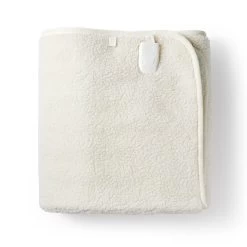 Hij is 150 x 80 cm en is gemaakt van synthetische wol en polyester, is beveiligd tegen oververhitting en kortsluiting en kan in de wasmachine.