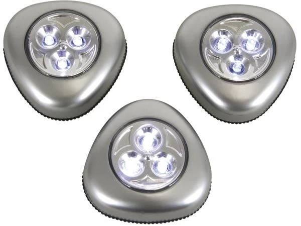 Met deze zeer handige zelfklevende LED lampen kunt u de lamp gemakkelijk op bijna elk type oppervlak plakken. De 3 zelfklevende LED lampen in een dubbele blister hebbe een in- en uitschakeling d.m.v. een simpele druk op de lamp. De levensduur van de batterij bedraagt ± 100 uur (alkaline batterijen).