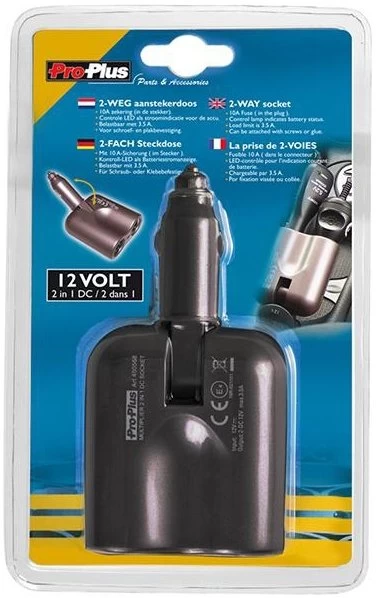 Met deze verstelbare 2-Weg splitter van ProPlus kunnen maximaal twee van 12V apparaten met Euro Normstekkers gelijktijdig worden gebruikt. De stekker bevat een overbelastingsbeveiliging met 3.5A zekering. Op het moment dat er stroomindicatie voor de accu is, zal de controle LED branden.