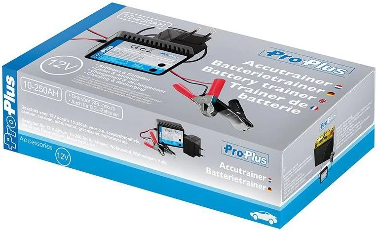 Deze eenvoudige accutrainer is ideaal voor 12V accu’s 10-250 aH zoals bijvoorbeeld uw motorfiets, scooter, de camper of de caravan, de grasmaaier, motorboot en oldtimers die een lange tijd niet zijn gebruikt. De accutrainer bevat twee indicatie LED lampjes. De netspanning betreft 220V / 50-60Hz. Door het automatisch laden en ontladen blijft de accu in goede conditie.