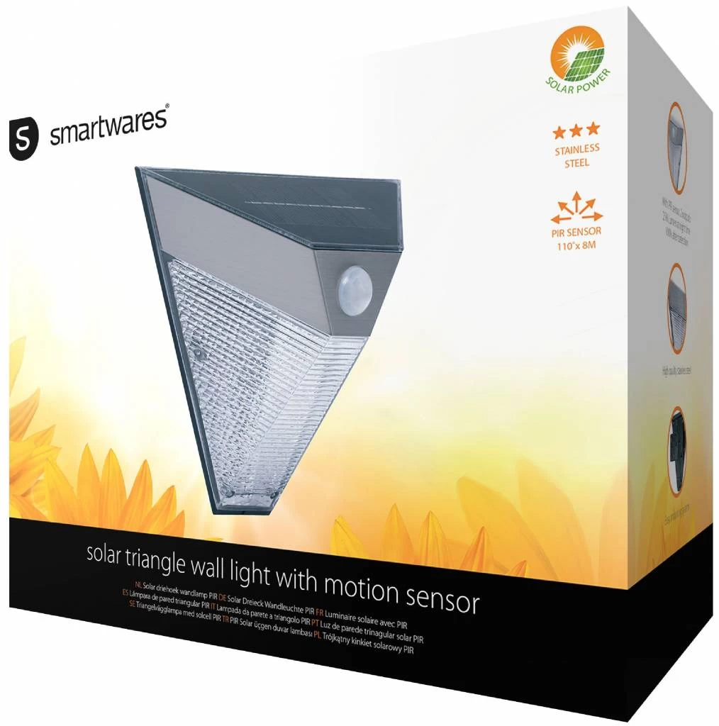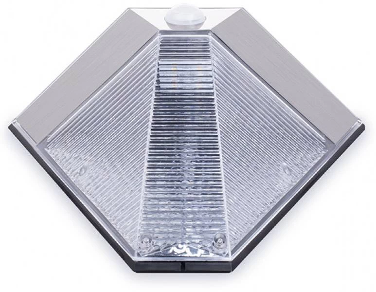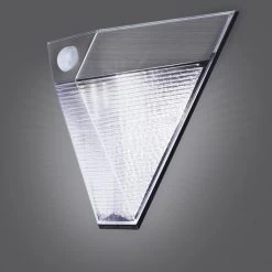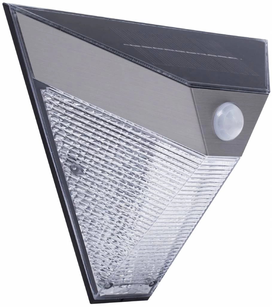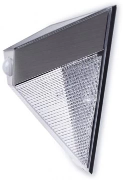 Deze wandlamp op zonne-energie is vervaardigd van RVS en voorzien van een bewegingsmelder. Deze lamp gaat zacht (15 lumen) constant branden zodra de duisternis invalt, maar bij detectie van beweging zal de lamp feller gaan branden (75 lumen).