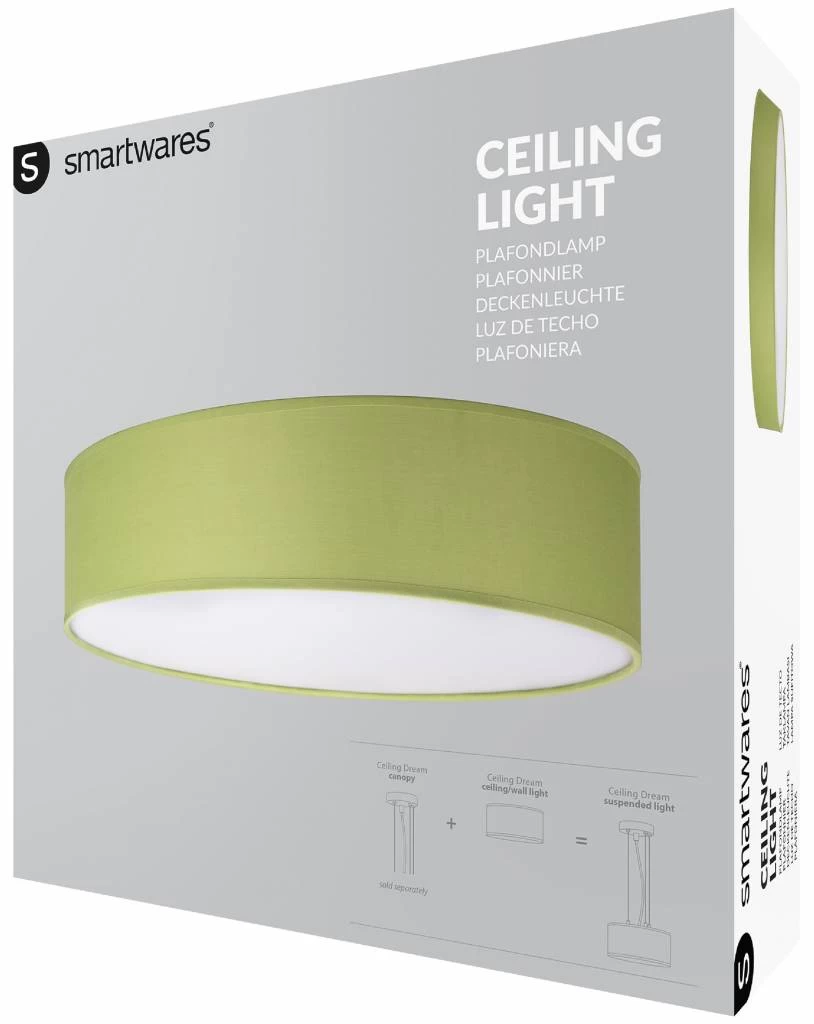 Geef je woonkamer, slaapkamer of gang meer sfeer met de Smartwares 6000.546 Mia LED plafondlamp groen uit de serie Ceiling Dream. De plafondlamp van LED heeft een doorsnede van 40 cm en past in vrijwel iedere kamer. De lampenkap is gemaakt van textiel, waardoor de lamp een sfeervol licht creëert. De lamp is uitgerust met drie E14 fittingen (niet meegeleverd), geschikt voor lichtbronnen met maximaal 40 W.