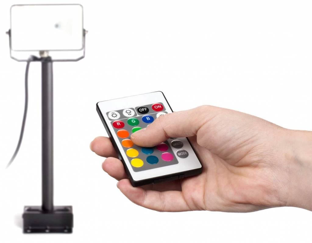 Waar je normaal de keuze hebt uit een witte of een RGB schijnwerper kun je met deze schijnwerper kiezen uit wit én 16 kleuren waardoor je dus alles in één lamp hebt. Hierdoor is het mogelijk om voor iedere gelegenheid de perfecte sfeer te creëren. Ga voor een kleurrijk licht bij een feestje of kies voor helder wit licht voor het dagelijks gebruik. De geïntegreerde LED lamp is 10 W en produceren 750 Lumen. Je kunt de lamp eenvoudig bedienen met de inbegrepen afstandsbediening. Daarnaast kun je kiezen uit zes verschillende lichteffecten zoals disco of kleurovergang.