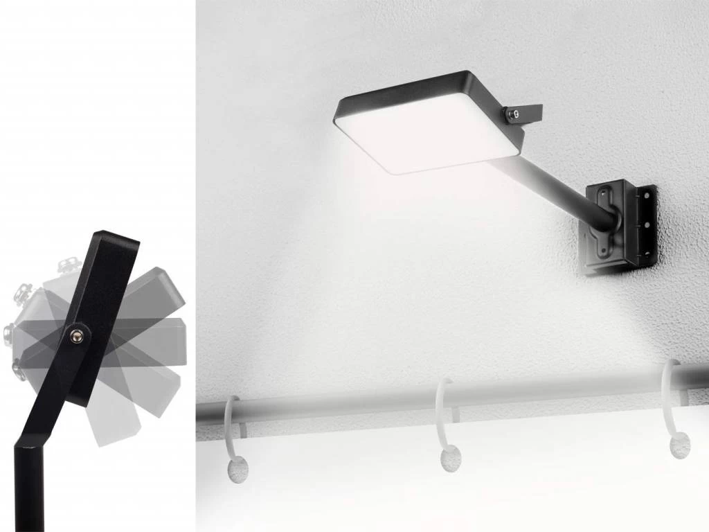 De aluminium schijnwerper is heel eenvoudig te installeren. Doordat de lamp is uitgerust met een 2 m lange kabel met stekker kun je de lamp dus gewoon aansluiten op een stopcontact. Daarnaast kun je kiezen of je de lamp aan de muur bevestigd of met de spies in de grond steekt. De kop van de schijnwerper is draaibaar en kan daarnaast ook gekanteld worden zodat je altijd de juiste plekken verlicht. Met een IP65 beschermingswaarde kan de schijnwerper probleemloos buiten gebruikt worden.